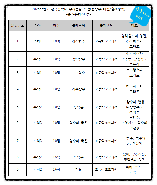 2026학년도 한국공학대 논술 오전 기출 분석(문항수/배점/출제영역) 페이지 정보 작성자 목동씨사이트 댓글 0건 조회 2회 작성일 26-04-23 13:32 본문 2026학년도 한국공학대 논술 오전 기출 분석(문항수/배점/출제영역) 목록 이전글2026학년도 한국공학대 논술 오후 기출 분석(문항수/배점/출제영역) 26.04.23 다음글2026학년도 을지대 영향평가 분석 자료 정리 26.04.23 댓글목록 댓글목록 등록된 댓글이 없습니다.