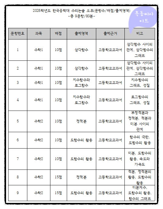 2026학년도 한국공학대 논술 오후 기출 분석(문항수/배점/출제영역) 페이지 정보 작성자 목동씨사이트 댓글 0건 조회 2회 작성일 26-04-23 14:12 본문 2026학년도 한국공학대 논술 오후 기출 분석(문항수/배점/출제영역) 목록 이전글경영·경제·금융 관련 학과 [2027학년도 약술형 논술고사 대학 학과 분석] 26.04.23 다음글2026학년도 한국공학대 논술 오전 기출 분석(문항수/배점/출제영역) 26.04.23 댓글목록 댓글목록 등록된 댓글이 없습니다.
