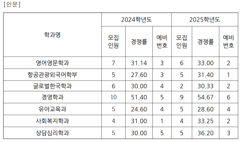삼육대 약술형 논술 전형 경쟁률·모집인원·추합인원 2개년 정리(2024학년도-2025학년도)